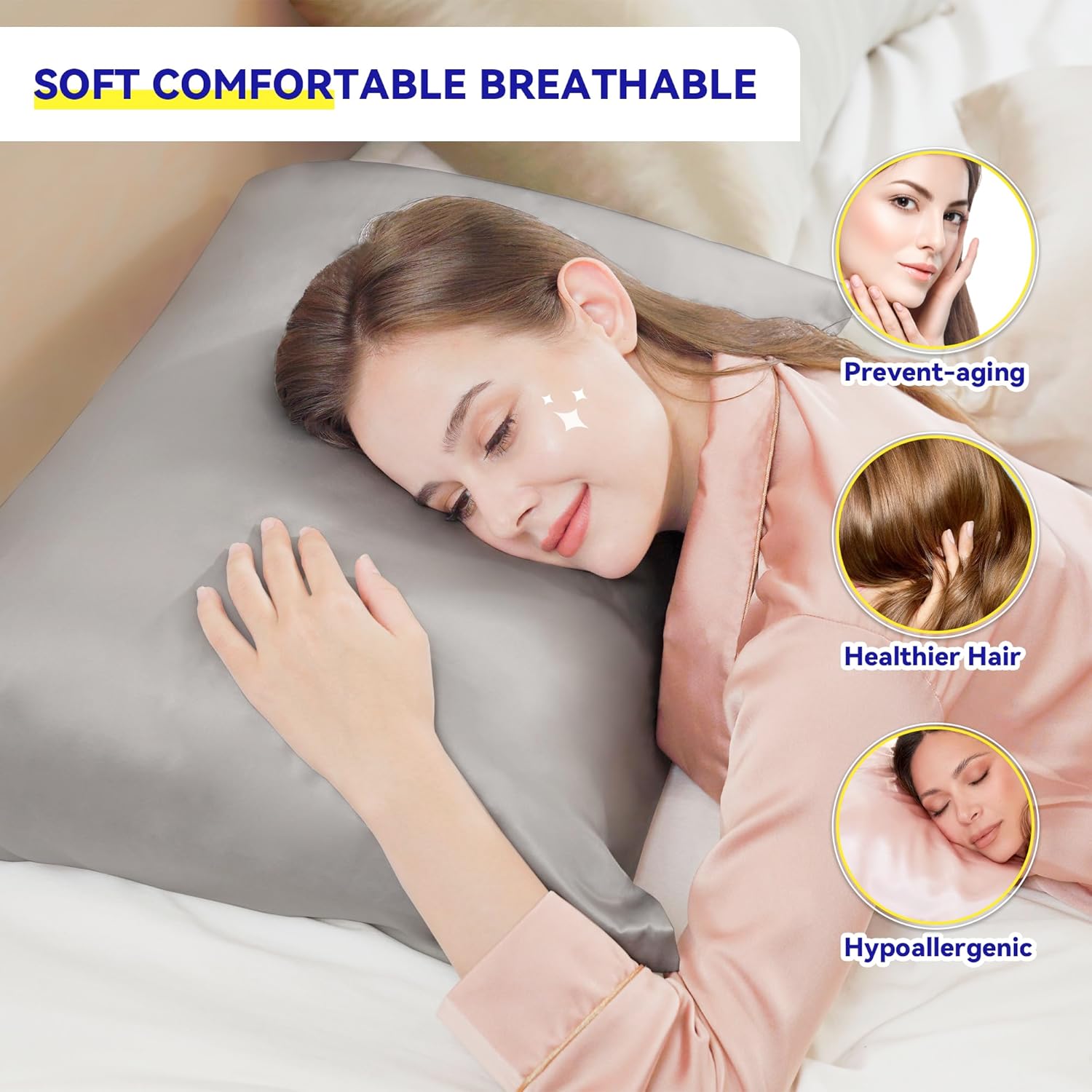 A smooth, pure silk pillowcase that protects hair, nourishes skin, and adds a touch of luxury to your sleep routine.